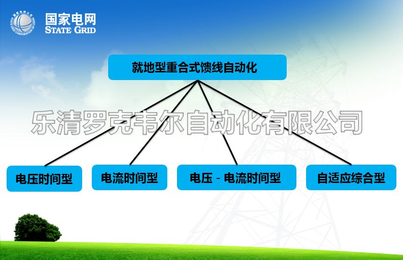 乐清罗克韦尔自动化有限公司响应市场需求,根据某些地区通信条件差,不能组网输电线路故障监测系统,而研发了电压时间型控制器,电流时间型控制器,电压-电流时间型控制器,联络型控制器,重合闸控制器,融合各类型控制器与真空断路器构成就地型重合式馈线自动化。就地型重合式馈线自动化能实现在线路发生故障时,通过线路开关间的逻辑配合,利用重合器现实线路故障定位、隔离和非故障区域恢复供电。