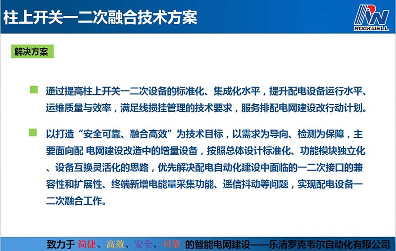 乐清罗克韦尔自动化有限公司致力于简捷,高效,安全,可靠的智能配电网建设,响应国家电网的配电网一二次融合技术方案,做最好的智能配电网建设者。