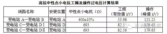 表中汇总了相关站点的高抗中性点小电抗的工频过及操作过电压计算结果。供高抗中性点和小电抗绝缘水平及中性点MOA校核。