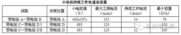 变电站A-变电站B变电站A侧高抗中性点小电抗容量选为79kVAR,变电站C-变电站D线路小电抗选为容量100kVAR,原小电抗容量为540kVAR,因此可继续使用。实际上最大工频电流持续时间小于0.5s,原小电抗持续工作电流选为30A,远大于计算值,因此可继续使用。