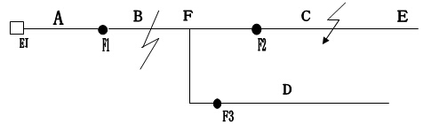 E1—断路器(或重合器): F1.F2.F3—跌落式分段器